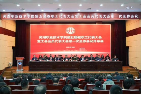12月27日下午,芜湖职业技术学院五届一次“两代会”在文津校区学术报告厅隆重开幕。芜湖市人大常委会副主任、市总工会主席董萍,市总工会基层工作部部长吴奕应邀出席开幕会。校党政班子成员王志鹏、高武、袁家和、季慕寅、朱志国、伍小平、李冬生、曾友山、刘权,校关工委常务副主任罗珊红,大会主席团全体成员在主席台就坐。本届两代会全体正式代表、特邀代表和列席代表参加会议。