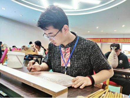 陈腾军老师作为我校艺术传媒学院的骨干教师,长期致力于陶瓷艺术领域的教学与研究工作,多次参与国家级、省级竞赛。在2024年9月21日至22日,第十届全国陶瓷行业职业技能竞赛安徽赛区选拔赛暨第六届安徽省陶瓷行业技能大赛中,经过理论考试、手工工艺制作两个模块近两天时间的激烈角逐,我院陈腾军教师获得职工组陶瓷彩绘师赛项第一名的成绩。2021年作品《和而不同》、《全家福NO.2》分别获得第十一届中国陶瓷产品设计大赛金奖;2022年作品《玉兔纳福》获安徽省第九届工业设计大赛三等奖;2023年作品《全家福-三胎时代》分别获第八届安徽美术大展优秀奖(最高奖)、第八届安徽省陶瓷艺术精品展银奖;2024年第十届全国陶瓷行业职业技能竞赛总决赛(陶瓷装饰工-陶瓷彩绘工)三等奖;2024年作品《原野之歌》获第九届安徽省陶瓷艺术精品展金奖;并荣获2024年“全国陶瓷行业技术能手”称号。